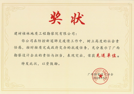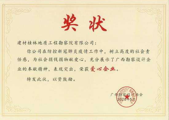近日,广西总队所属勘察院被广西勘察设计协会评为广西抗疫先进单位、爱心企业。