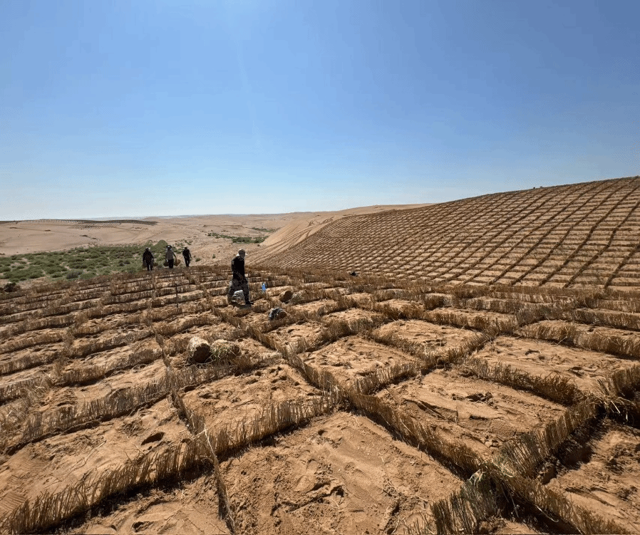 春风拂过草原,锡林郭勒盟苏尼特右旗三北防护林体系建设工程施工现场一派繁忙。地勘院克普公司工作人员在这里有序开展草方格固沙、人工种草等生态治理作业,整齐的草方格牢牢锁住流沙,为植被生长筑牢根基。随着治理工作的持续推进,昔日风沙肆虐的荒沙地渐显新绿,点点嫩芽破土而出,区域防风固沙能力显著提升,生态环境持续向好。从“沙进人退”到“绿进沙退”,每一抹新绿都凝结着建设者的坚守与付出,地勘人以实干守护绿水青山,用心用情筑牢我国北方重要生态安全屏障。