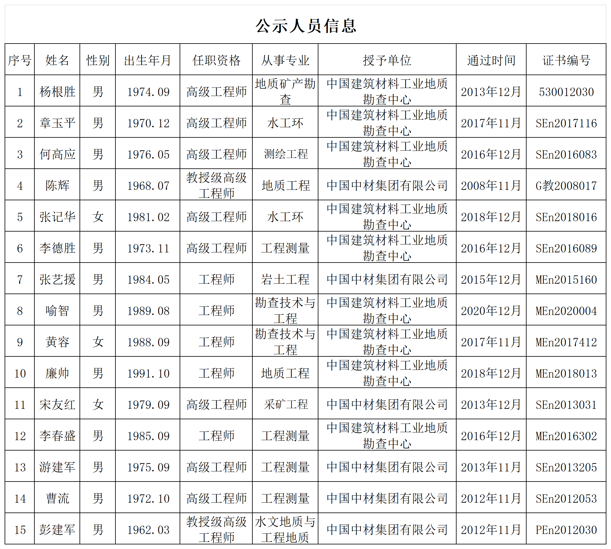 地勘院(深圳市南华岩土工程有限公司)专业技术人员职称信息列表
