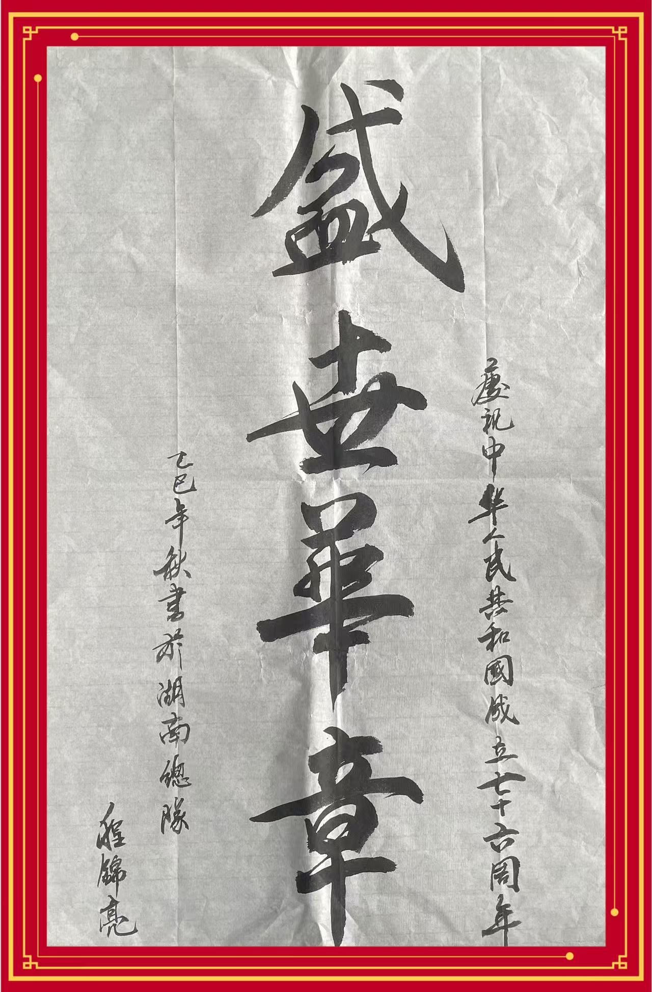 总队职工以书法、诗歌等各类文化创作形式为祖国庆生:书法爱好者挥毫泼墨,“国泰民安”“盛世华章” 等苍劲有力的字迹跃然纸上,一笔一划间饱含对祖国繁荣昌盛的美好祝愿;诗歌创作者写了一幅幅原创作品,《行香子·国庆》、《地质礼赞——贺新中国七十六华诞》等诗篇,用真挚的语言讲述祖国发展成就,抒发扎根岗位、报效祖国的壮志豪情。